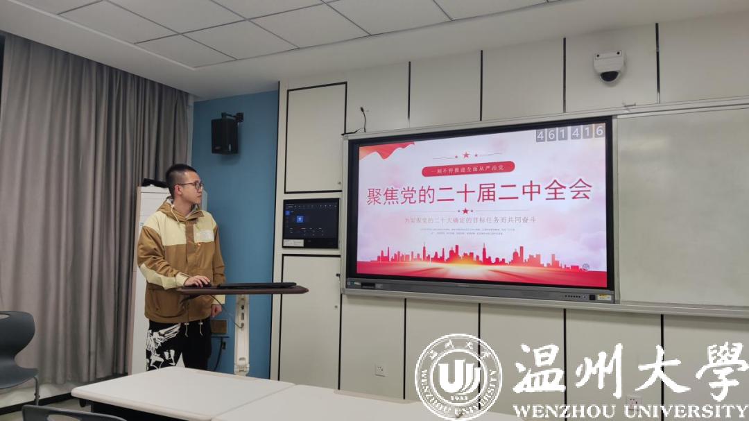 中国共产党第二十届中央委员会第二次全体会议于2023年2月26日至28日在北京举行,为传达党的二十届二中全会精神,追新番 本科生第二党支部于3月21日下午6:30在6B306开展了专题学习会。本次专题学习会由支部书记雷宏宇老师主持,支部党员与积极分子参加。