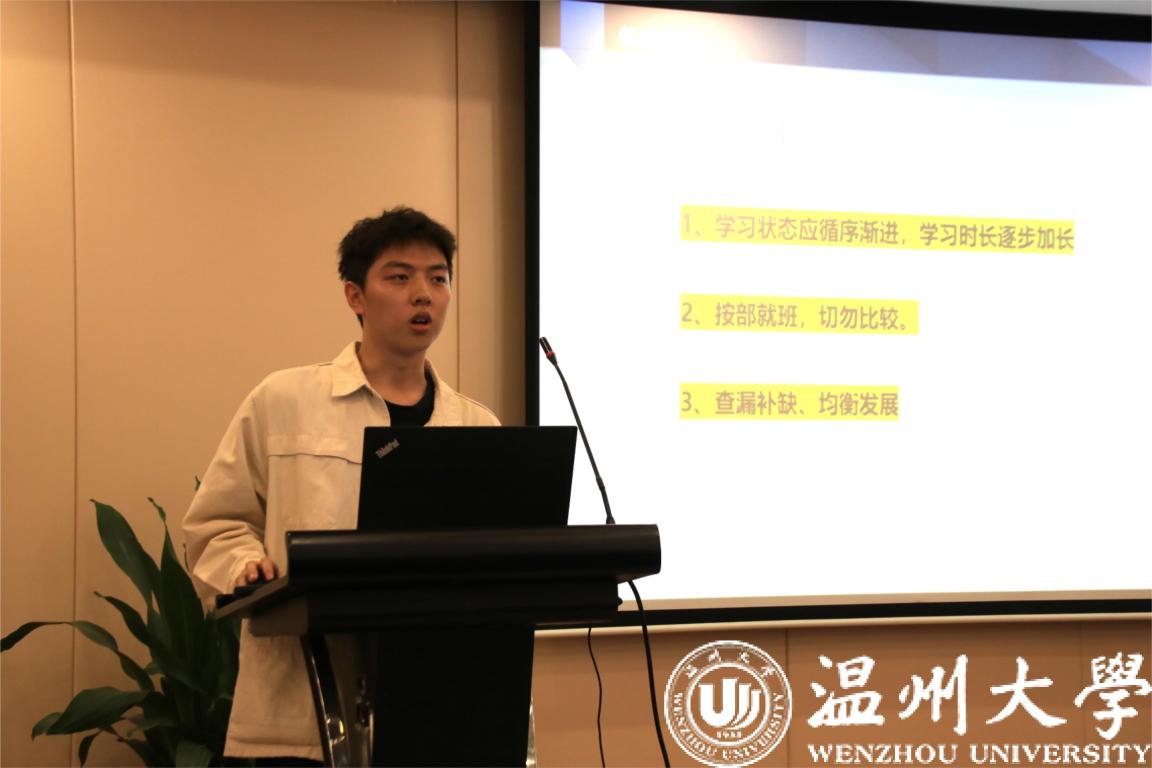施浙梁学长在考研分享中给我们分享了在备考过程中如何缓解学习压力,健康科学的备考。例如,学累了就去运动,多打打羽毛球可以缓解颈椎疼痛。他提醒学弟学妹们,考研是一场持久战,调节好心态与情绪非常重要。专业课的学习,要先从教材开始,重视真题与错题。