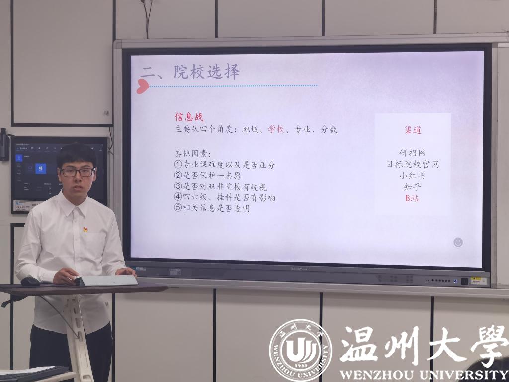 为鼓励支部党员勇往直前、追逐梦想、学有楷模、做有典范,支部优秀党员代表鲍海波同志做了考研经验分享。