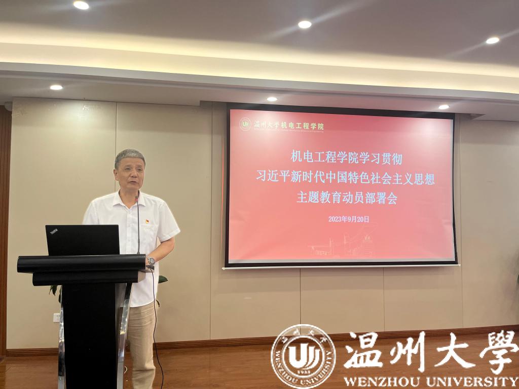 周荣书记作动员讲话。他传达了学校党委关于学习贯彻习近平新时代中国特色社会主义思想主题教育动员大会和工作部署会的会议精神。他强调学习贯彻习近平新时代中国特色社会主义思想主题教育是当前学校、学院最重要的政治任务,全体党员要把学习贯彻习近平新时代中国特色社会主义思想作为贯穿主题教育全过程的主题主线,以“牢记嘱托、争创一流”为方法路径,高标准高质量开展主题教育。周荣书记还对学院主题教育具体工作进行了安排部署。