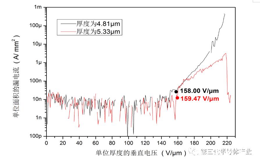 ·世界顶尖水平的耐压控制水平。通过芯生代通过关键技术的改进,可在外延层厚度仅为5.33μm即可实现850V的安全工作电压,实现了158V/μm单位厚度垂直击穿电压,误差小于1.5V/μm,即误差小于1%(图2(c)),处于世界顶尖水平。