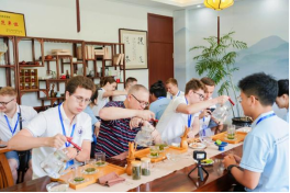 紧接着由王梦妍老师带来的中华茶艺课程更是让俄罗斯青年代表们大开眼界。王老师首先详细讲解了中国茶文化的发展历程以及不同茶类的特点,并现场优雅地展示了精湛的茶艺流程,带领他们亲自体验泡茶、品茶的乐趣,感受瓯越茶文化的独特魅力。