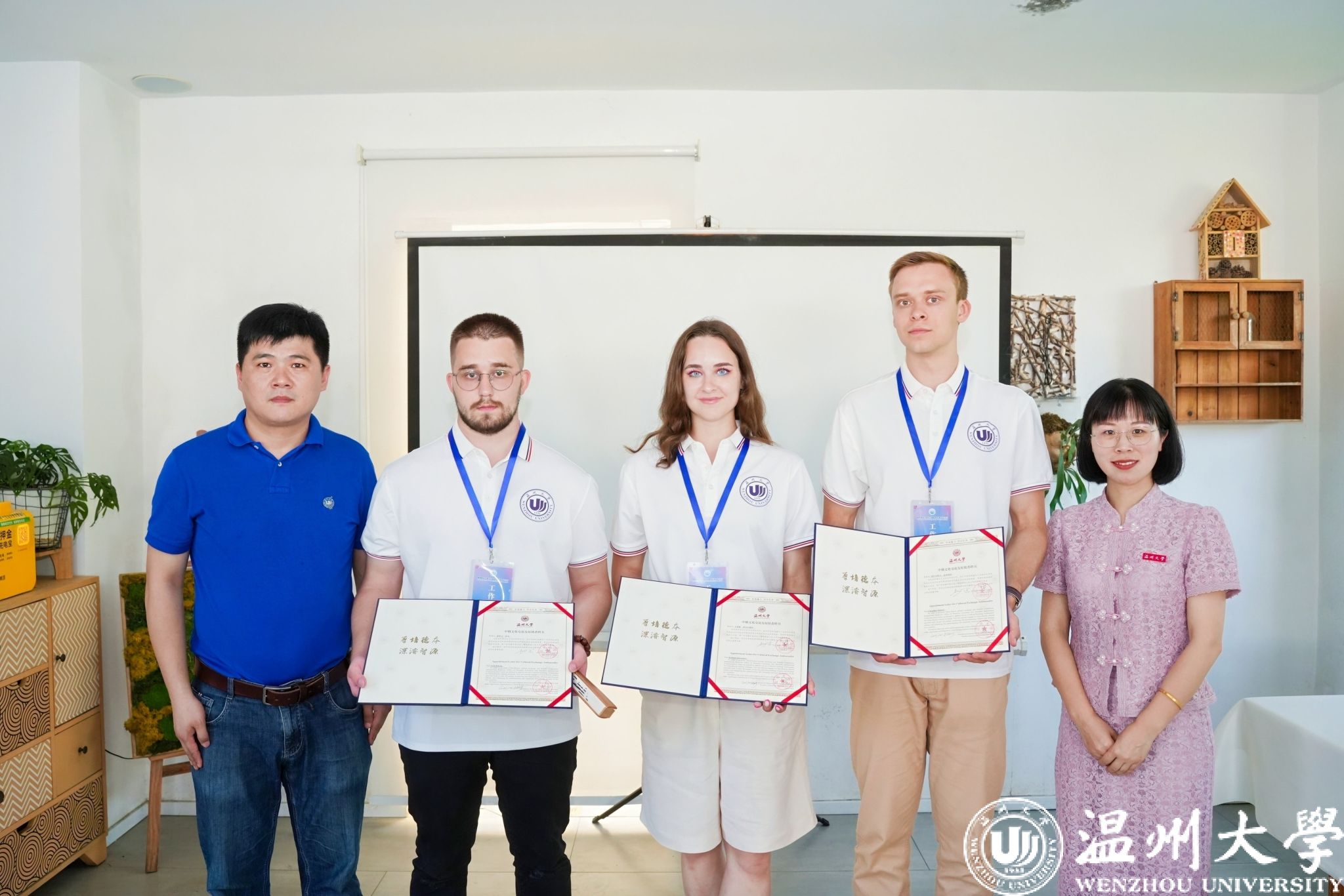 并且学校为9名俄罗斯青年代表颁发了“中俄文化交流友好使者”聘书,感谢他们的积极参与对中俄文化交流的贡献。俄罗斯青年代表们也发表了感言,表达了对学校的感谢,不仅深入了解了中国文化,也结交了许多新朋友。