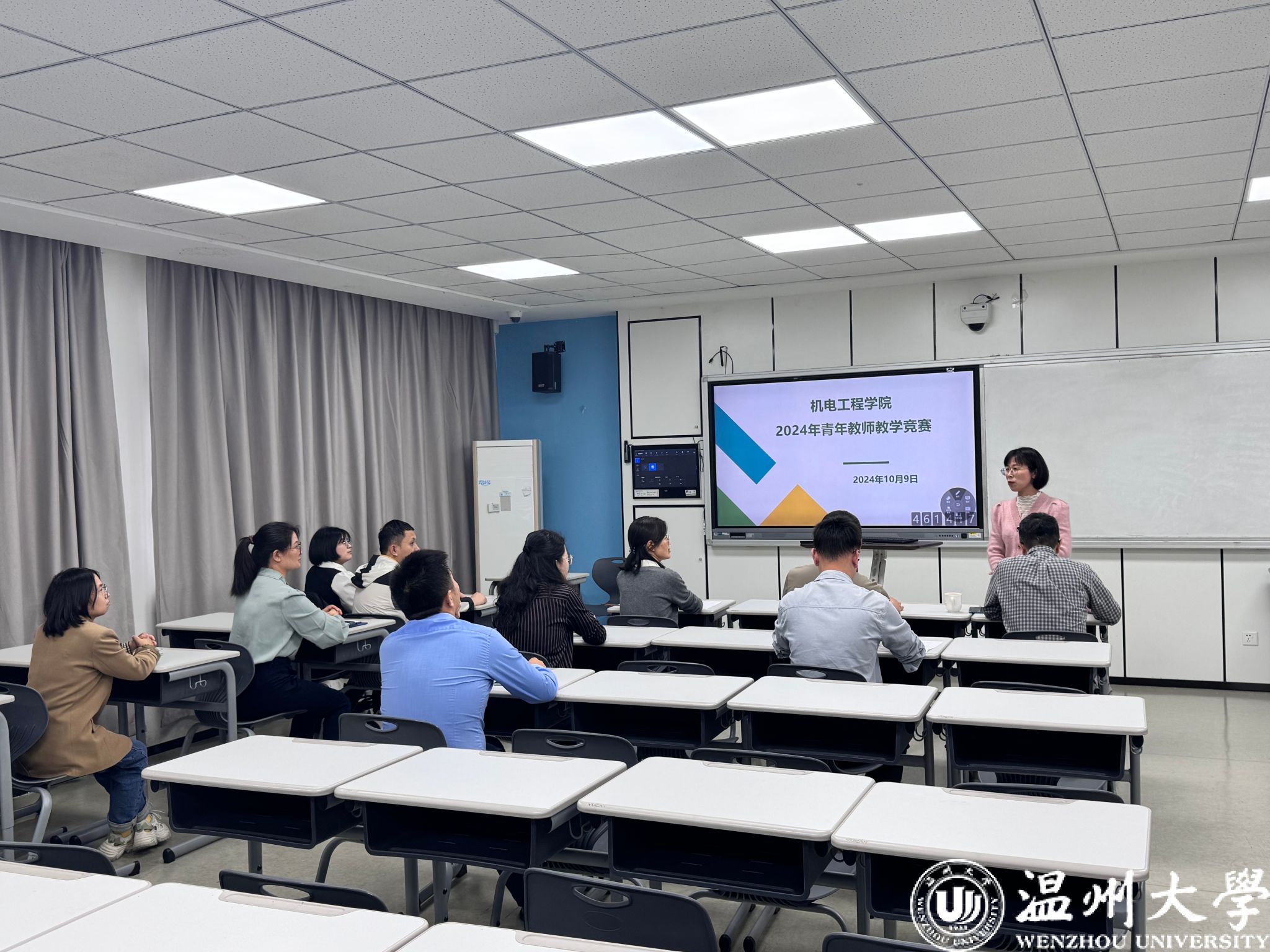 追新番 于2024年10月9日在南校区6-B306成功举办了2024年青年教师教学竞赛院赛,本次竞赛旨在激发青年教师的教学热情和创新思维,提升教学质量与水平,学院党委书记易招娣观摩了比赛、督导组长李勇、院督导瞿建武、陈亚绒和工业工程系主任张祥雷担任专家评委。