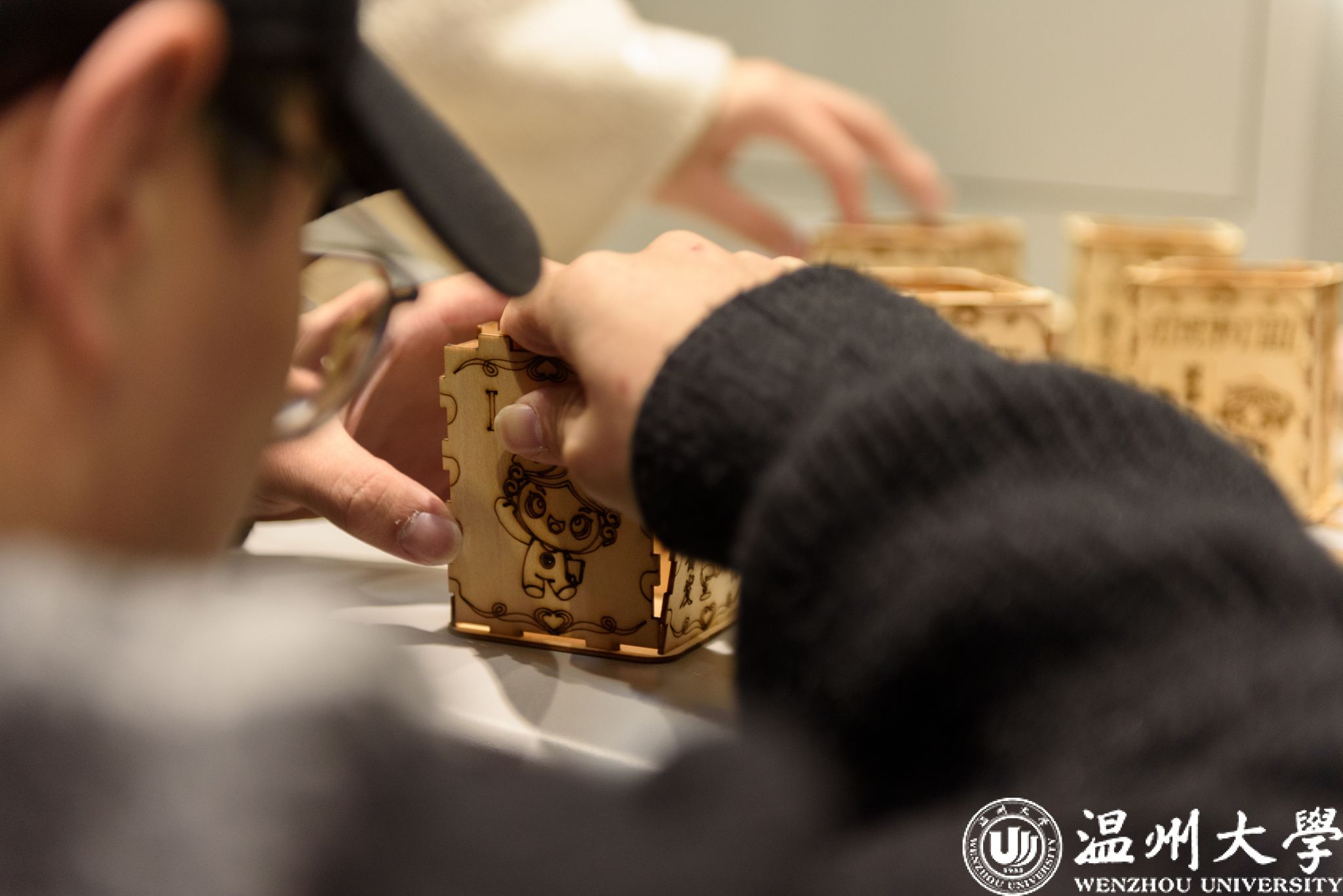 在制作过程中,辅导员们不仅体验到了科技的魅力,还深刻感受到了团队合作的重要性。这些独一无二的卡通挂件成为了大家个人收藏的珍贵纪念品。同时,潘敏辉老师为参加本次活动的所有辅导员们精心制作了刻有学校Logo、吉祥物文文达达和姓名的专属笔筒。