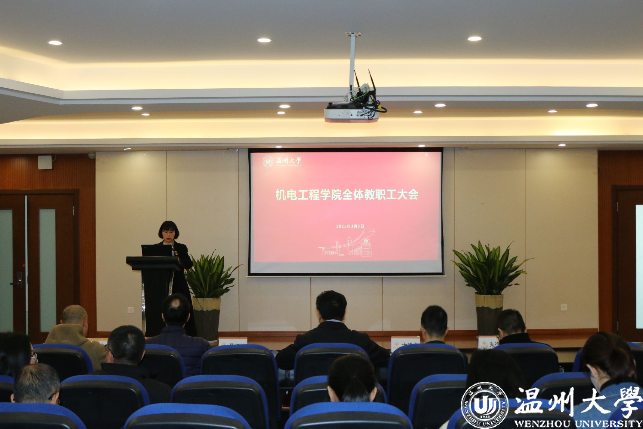 2025 年3月5日下午,追新番 在6B309会议室召开全体教职工大会暨政治理论学习会。学院全体教职工以及追新番 激光研究院、平阳研究院、苍南研究院领导班子参会,会议由学院党委书记易招娣主持。