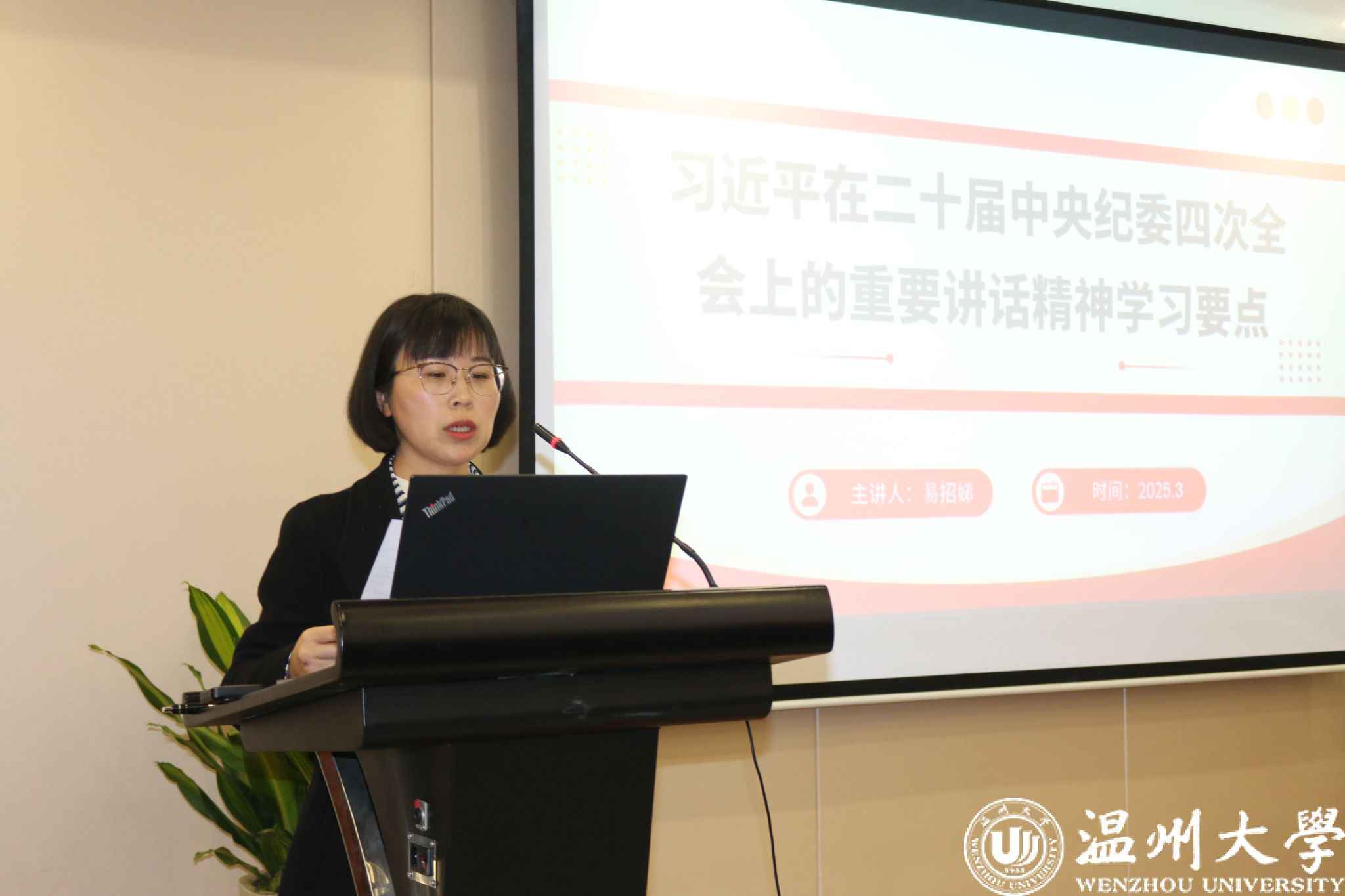 易招娣书记作《学习习近平在二十届中央纪委四次全会上发表重要讲话精神》专题辅导,并结合学院发展实际,作总结讲话。她强调,新学期要坚持目标为导向,紧扣工作重点,高质量、高标准落实发展举措,推动工作落地见效;要强化人才驱动,发挥优秀人才和先锋模范核心和带头作用,形成示范效应,带动全院师生奋勇向前;要坚持党建与业务融合发展,注重工作相互的衔接和融合,推动从“物理叠加”向“化学转变”,全力以赴将党建业务做优、做特、做强,推动追新番 在新学期实现高质量发展。