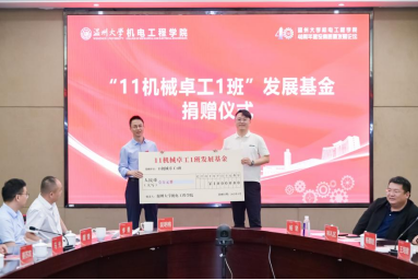 随后,进行了“工业工程02102”奖助基金和“11机械卓工1班”发展基金成立仪式,以及教学设备捐赠仪式。这不仅为学院的实践教学、科研创新提供强有力的支撑,也激励学弟学妹们要志存高远、勤学好思、精益创新。