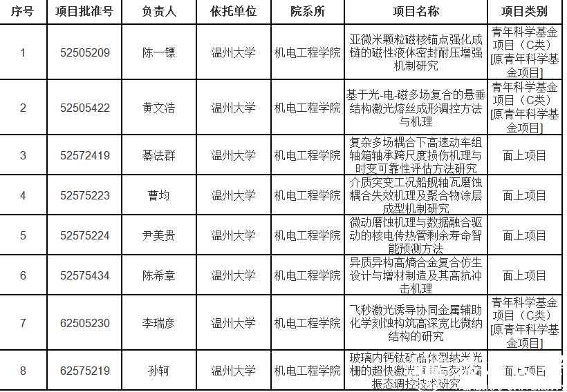近日,国家自然科学基金委员会公布了2025年度集中受理期自然科学基金项目资助结果。学院在此次申报中表现出色,共计8个项目获得立项资助,其中面上项目5项,青年科学基金项目(C类)3项,立项数量与质量均保持稳步提升态势,彰显了学院在机械工程领域扎实的科研实力与创新活力。