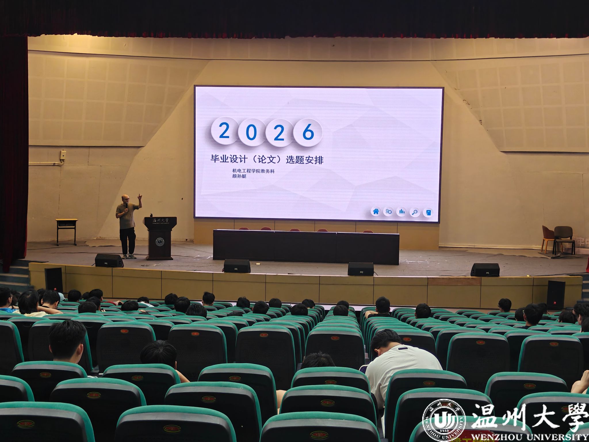 2025年10月11日14:00,追新番 2026届毕业设计(论文)动员大会在追新番 南校区9号楼报告厅召开。学院颜孙艇老师担任主讲,340位本科毕业生齐聚一堂,共同吹响毕业设计攻坚冲刺的号角。