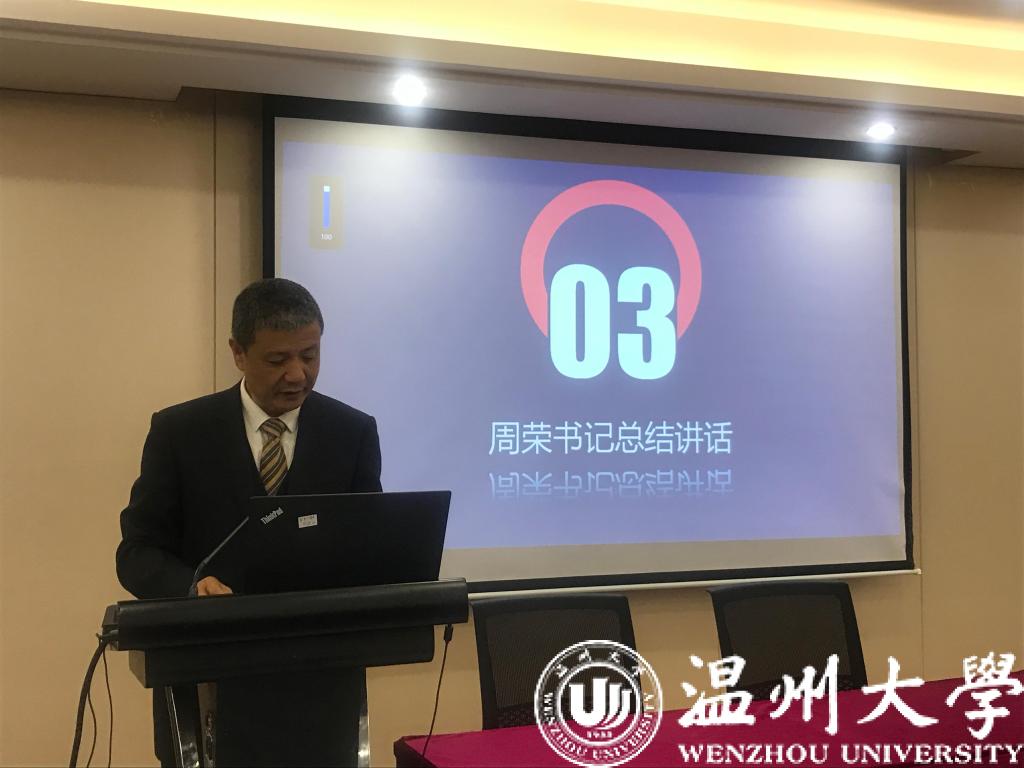 周荣书记总结了2019年学院在主题教育、组织建设、党员发展、意识形态和党风廉政方面的工作,他同时表示,学院行政在极度缺人的情况还能保质保量完成学院各项工作,值得点赞!学院各部门教师奋力争先,取得了各项好成绩,值得点赞!他希望全体教职工在新的一年只争朝夕,不负韶华,不忘初心、牢记使命,排除万难,砥砺前行,再续辉煌!