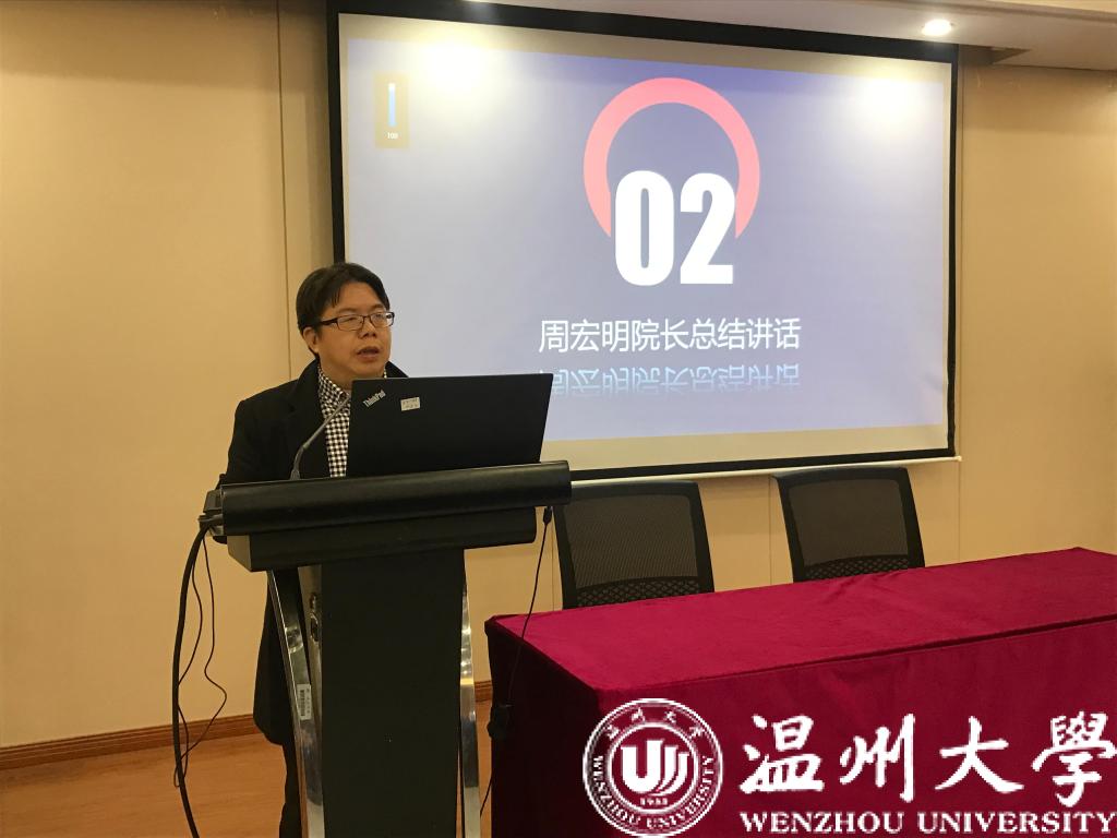 周宏明院长总结介绍了学院2019年取得的各项成绩,特别是学院的十件大喜事,他对各位老师的工作表示了充分的肯定。接着,他介绍了学院2020年在教学、学科、科研、师资队伍、研究生培养、学生竞赛等方面的目标,他指出,落实学院的目标责任制,需要每位教职工的鼎力支持和通力协作。