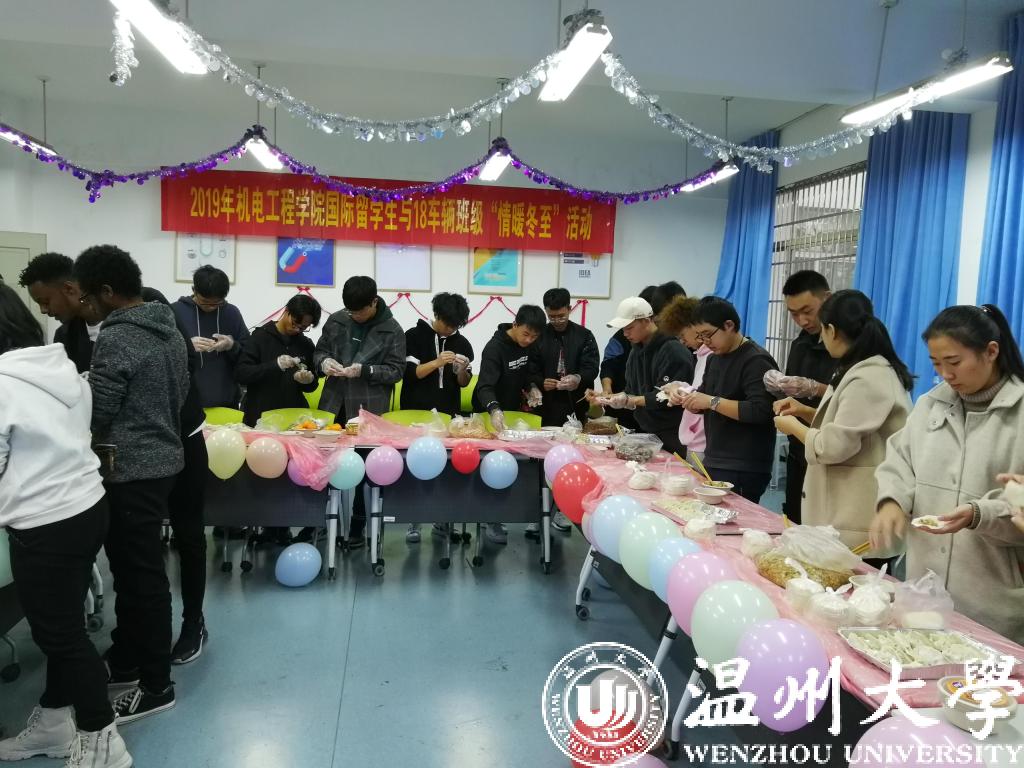 2019年12月22日,追新番 国际留学生与18级车辆工程专业学生在6B201举办了“情暖冬至、共度佳节、传递友谊”的冬至包饺子活动,追新番 老师也积极参与其中。