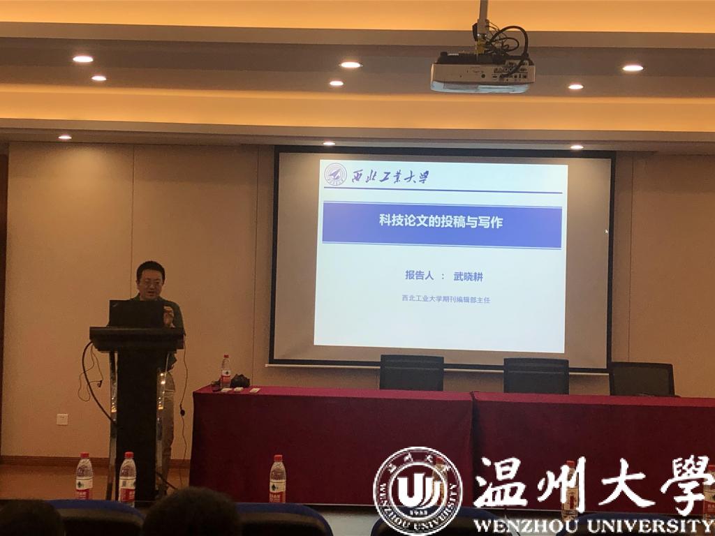 2019年7月5日上午, 西北工业大学期刊编辑部主任武晓耕在追新番 6B309报告厅作关于科技论文的投稿与写作的专题报告。报告由副院长李勇主持,学院教师代表及全体研究生参加。