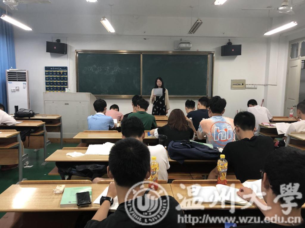 辅导员胡施施老师及年级委员会委员们对每个班级轮流进行宣讲,将考试注意事项向同学们进行了解读,同学们也一起学习了考试工作实施的相关细则,尤其对考试纪律及违纪处理进行了重点学习。随后,胡老师用往届遇到的相关情况作为事例,告诫同学们在接下来的考试中,不要抱有侥幸心理,在期末考试来临之际能明确学习目标,端正考试态度,并衷心祝愿所有同学在公平、公正的环境中取得优异的成绩。