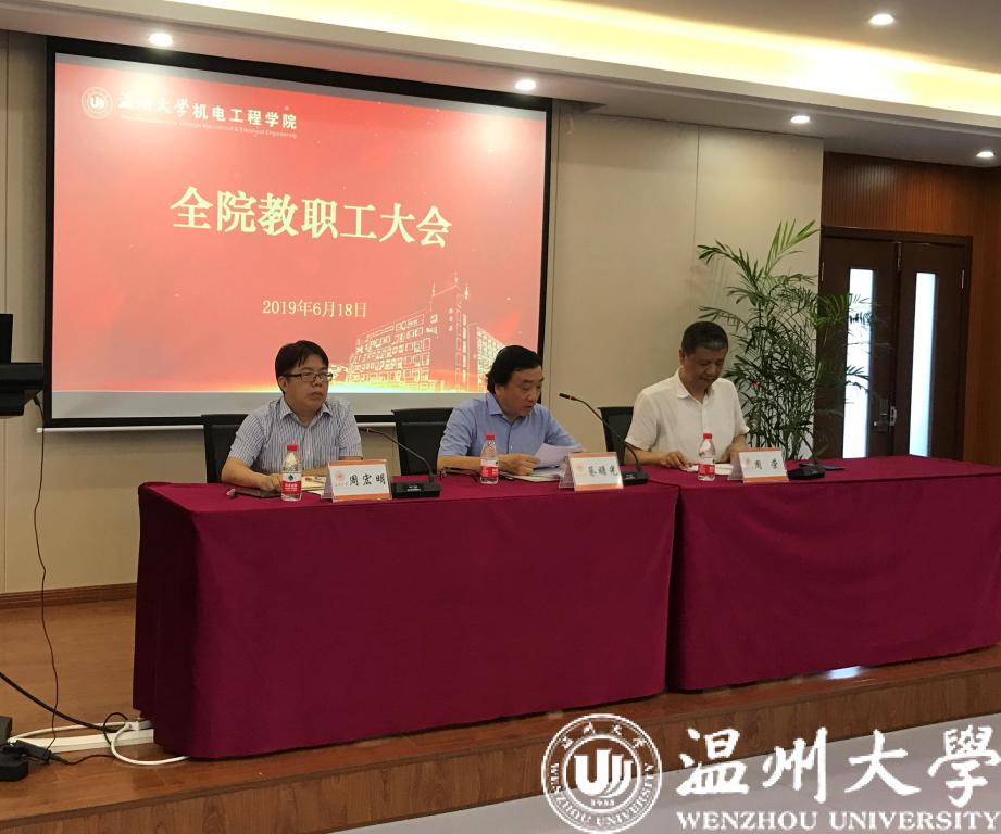 2019年6月18日下午,追新番 在6B309新学术报告厅召开全院教职工大会,宣布新一届领导班子。追新番 副校长蔡曙光、追新番 领导班子、全体教职工参加了会议。会议由党总支书记周荣主持。