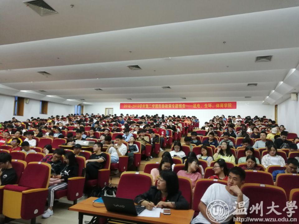 2019年5月28日18:30,追新番 、生命与环境科学学院、体育学院在追新番 步青厅共同开展了2018-2019学年第二学期形势政策课。本次特别邀请了马克思主义学院张小燕教授为三个学院的同学开展《红色文明在瓯越》主题的形势政策报告讲座。