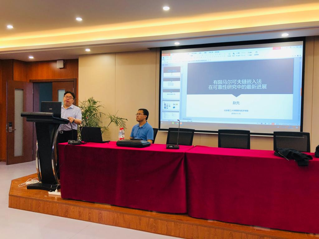 2019年4月26日上午,北京理工大学管理与经济学院赵先教授在追新番 6B309为追新番 师生带来一场题为“有限马尔可夫链嵌入法及其在可靠性研究中的最新进展”的学术讲座。追新番 院长周宏明教授,教师代表庞继红副教授、綦法群博士及2018级硕士研究生参加。