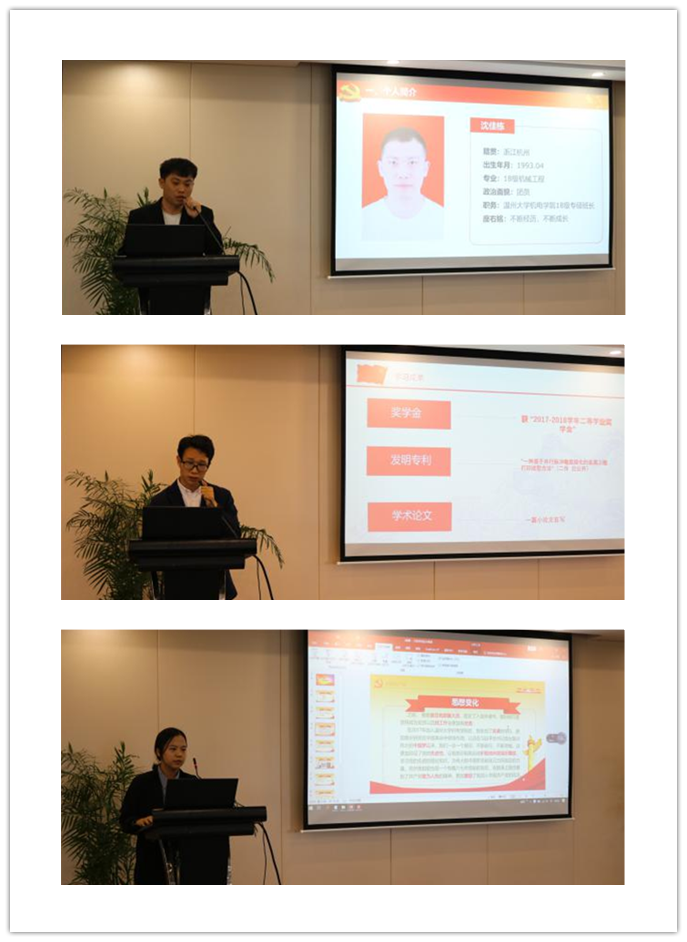 在研究生党支部副书记张玉朋介绍完追新番 党员发展答辩会制度实施办法之后,五位答辩人逐一展示了自己的答辩PPT,向党组织汇报了自己对党的认识,陈述了入党动机及自身表现,同时也就自身存在的优点和不足之处进行了深刻的分析,并明确了自己今后努力的方向。随后,在场的党员同志和评委客观公正地对答辩人进行提问,环节气氛活跃。