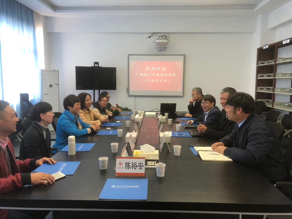 周宏明院长向来访客人介绍了学院师资队伍、学科科研平台、研究方向以及人才培养情况。广场路小学集团校长杨素琴简要介绍了广场路小学集团四个校区的情况,她表示此行目的是希望小学的实践教育能得到高校更高层面的指导,广场路小学在信息技术方面已成立机器人实验点进行机器人知识的普及和基础教育,希望能与追新番 实现合作。随后,广场路小学集团教师也就教学工作方面与追新番 领导进行了交流。大家都认为在小学生培养方面,兴趣是最好的老师,要鼓励学生动手制作、进行创新。