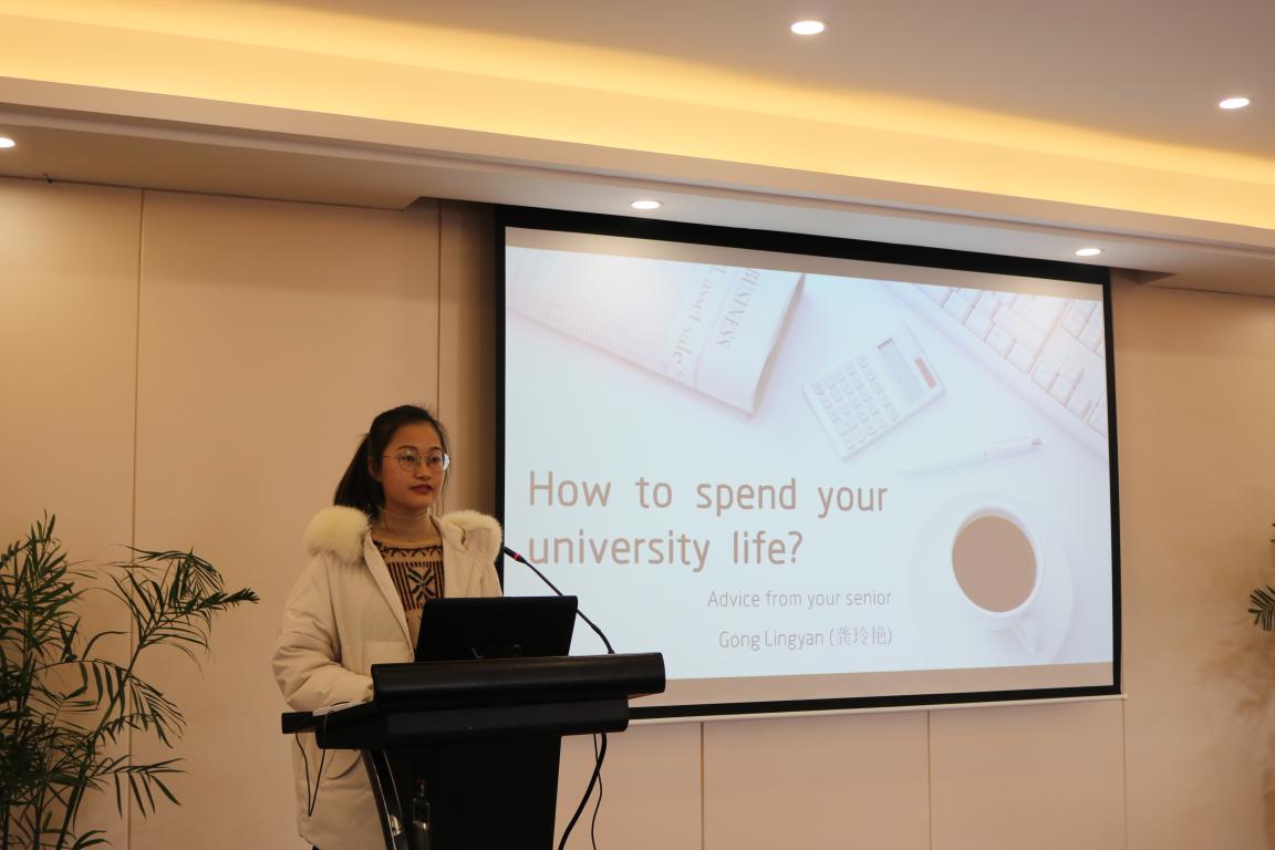 颁奖结束,龚玲艳同学开始用英语进行她的分享会,她以自己为例子,告诉大家如何将大学生活过得更有意义、更充实,并推荐给大家一些实用的书籍与软件,还与大家分享了如何利用碎片时间的诀窍。作为一名发表的3篇SCI论文的学姐,她当然也和大家分享了如何写出一篇好论文,这当中少不了她不屑的努力和精益求精的耐心与专业精神。同学们听完讲座都受益匪浅。