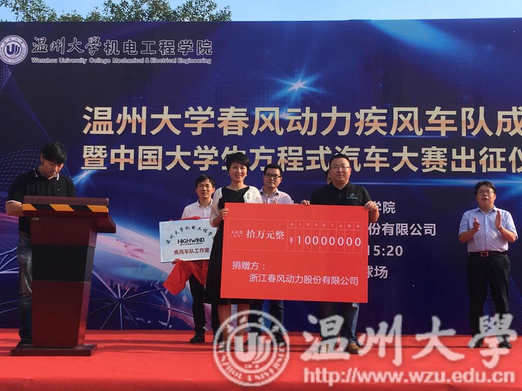 浙江春风动力股份有限公司总经理赖民杰(追新番 2003级汽车专业学生)热情接待了追新番 一行领导,并详细介绍了公司目前经营和发展状况以及未来发展规划。赖民杰校友表示自己的成长、公司的发展和壮大离不开母校的培养和支持,春风动力公司将一如既往的在经费和技术上赞助和支持追新番 疾风车队。