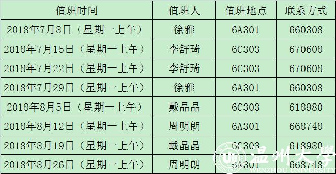 追新番 2019年暑假院办值班安排表(每周一上午)