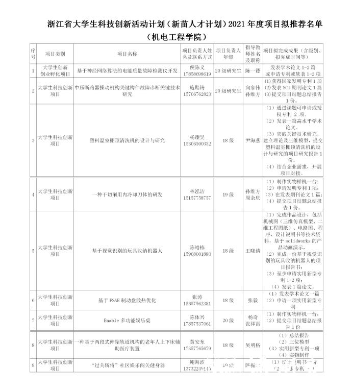 根据《关于印发〈浙江省大学生科技创新活动计划(新苗人才计划)实施办法(试行)的通知》(团浙联〔2010〕13号)的相关规定和要求,经专家评审,拟推荐至浙江省大学生科技创新活动计划(新苗人才计划)实施办公室。现将情况公示如下: