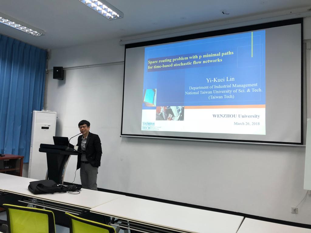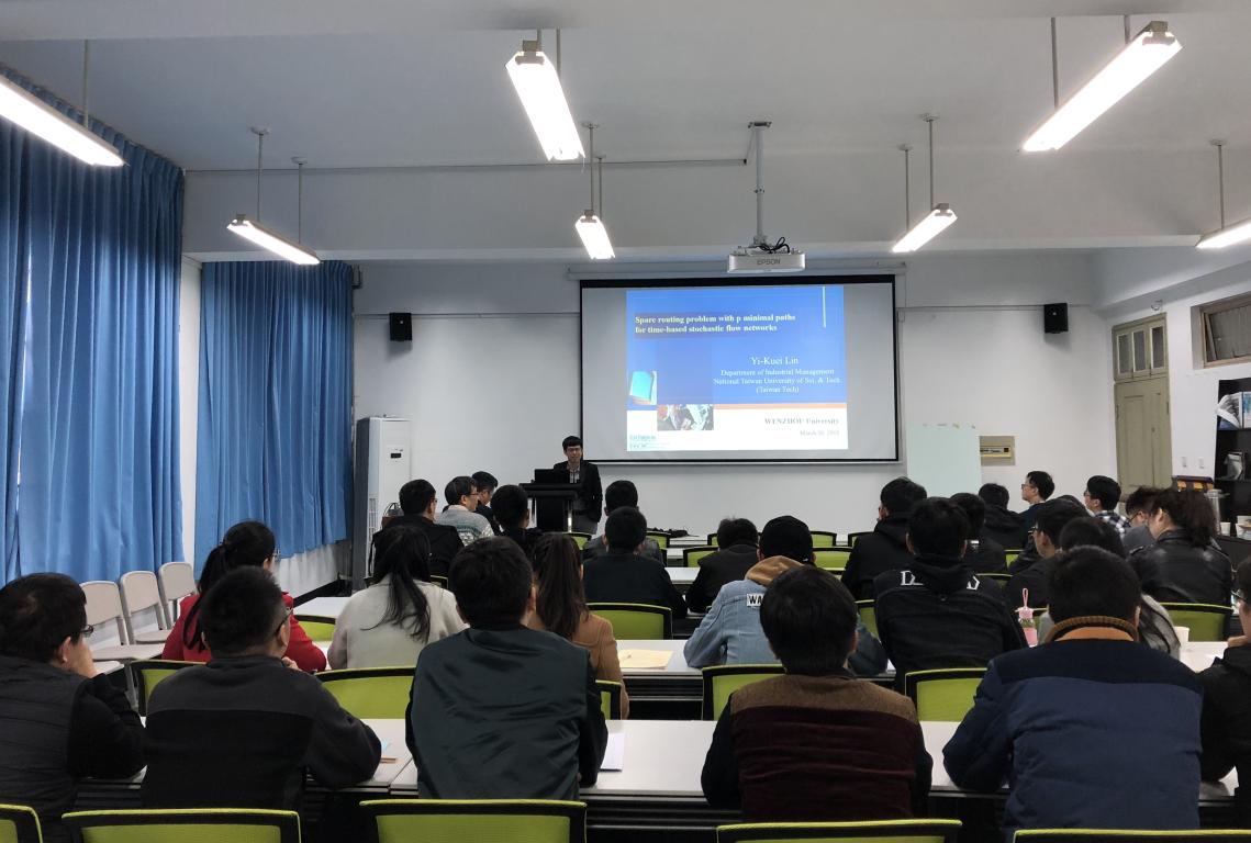2018年3月26日下午,台湾工业工程专业、台湾科技大学林义贵教授在追新番 6B201会议室为学院师生作了题为《Spare routing problem with p minimal paths for time-based stochastic flow networks》的学术讲座。讲座由追新番 激光与光电智能制造研究院院长马光教授主持。