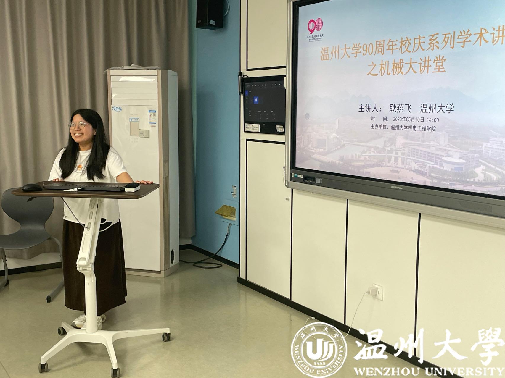 任燕教授报告的题目为《十年基层科技工作,忠实践行“八八战略”》。她从“团队介绍”、“研发产品原理”、“产品及工程运用”三个方面展开讲解,对自己的科研之路进行了讲述,让在场的同学们对科研工作有了一个深刻的认识和学习。
