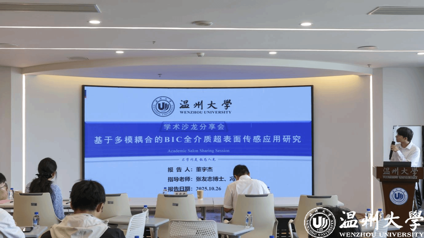 董宇杰同学则带来《基于连续域束缚态的多模耦合全介质超表面传感应用研究》,从理论模型构建到实验验证,介绍了全介质超表面在传感领域的创新应用,展现了跨学科融合的科研视角。