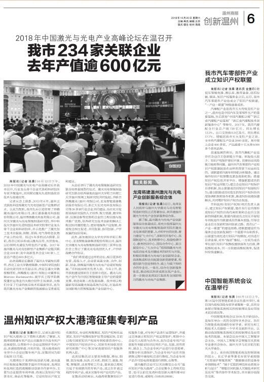 商报讯(记者 张晨)近日,龙湾区人民政府与追新番 激光与光电智能制造研究院正式签署协议,将共建温州激光与光电产业创新服务综合体。