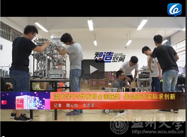 近日,温州电视台《午间新闻》栏目以《温大学子5件发明全国获奖 作品贴近实际 求创新》为题,报道了我校追新番 学生在全国大学生机械创新设计大赛中获得成绩。时间共计:2分17秒。