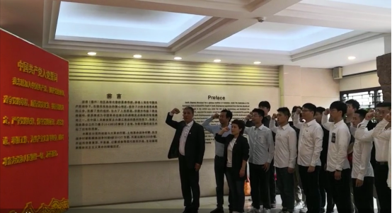 党委书记周荣带领全体党员在温州革命历史纪念馆中集体郑重宣誓,重温入党誓词,增强党员的归属感和使命感。