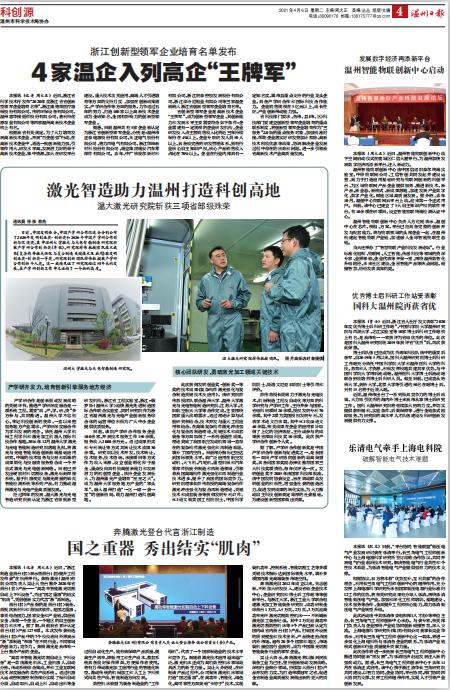 )超快激光先进制造国际合作联合实验室,同时研究院作为浙江省温州激光与光电产业创新服务综合体的运营单位积极为广大中小企业提供优质服务。