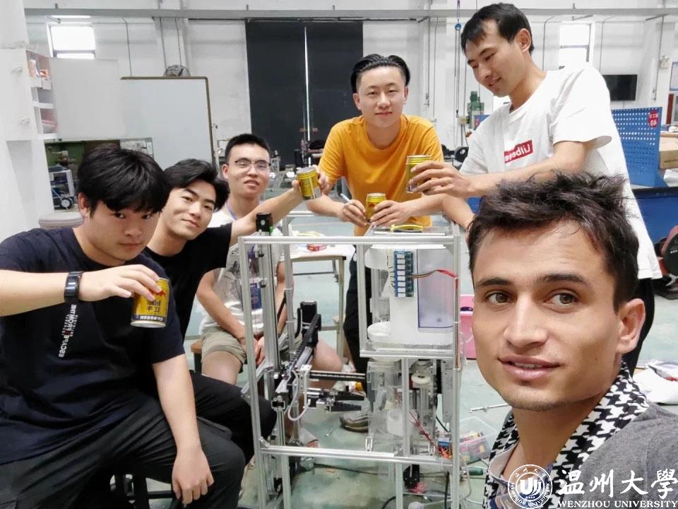 崔泽强、张哲汪、王逸翔、杨洋、王境,以及来自巴基斯坦的留学生NAWAB,都是追新番 的学生,因为都喜欢动手做研发,2020年的时候,六个男生组建成了团队,一起参与各种竞赛。在一次偶然的情况下,男生们发现了冲奶机的市场前景。“奶爸奶妈需要半夜起来给孩子冲奶粉,而一整套流程复杂繁琐,令人疲惫不堪。于是,市场上根据需求就出现了各种奶粉机。我们研究发现,这些奶粉机智能化程度较低、功能比较单一,但依然拥有不错的销量。所以我们就觉得,可以在这方面做一些努力。”崔泽强说。