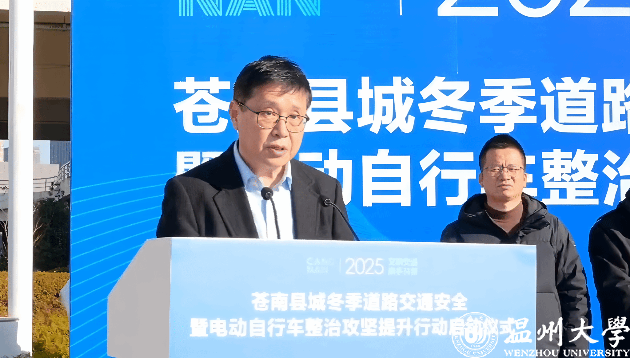 近日,2025“文明交通 携手共创”苍南县城冬季道路交通安全暨电动自行车整治攻坚提升活动启动仪式在县体育中心广场举行。苍南县委常委、副县长叶小剑,副县长、公安局局长葛震海等领导出席仪式,追新番 苍南研究院院长张淼应邀出席并作“科技赋能交通执法”主旨发言。