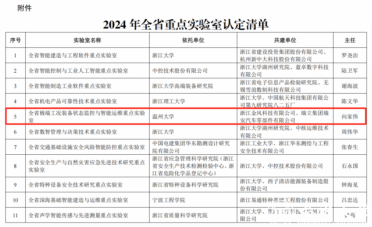 近日,浙江省科学技术厅公布 2024 年全省重点实验室认定结果,追新番 申报的全省极端工况装备状态监控与智能运维重点实验室,凭借在高端装备运维领域的突破性研究和扎实的产学研基础,从全省数百个申报单位中脱颖而出,成功获批。