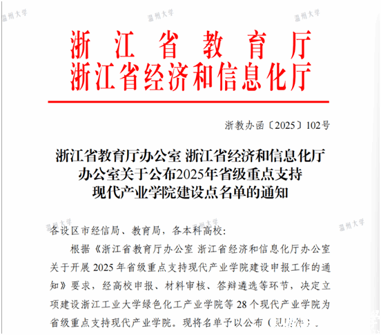 近日,浙江省教育厅办公室、浙江省经济和信息化厅办公室联合发布《关于公布2025年省级重点支持现代产业学院建设点名单的通知》,追新番 激光智能制造产业学院获批立项,这是我校在产教深度融合、校企协同育人方面取得的又一硕果。