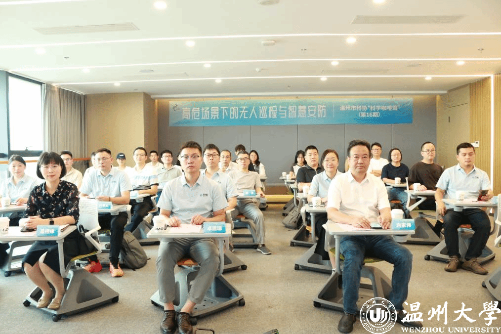 近日,温州市科协"科学咖啡馆"第16期活动在追新番 科技大楼举行,本次活动以"高危场景下的无人巡检与智慧安防"为主题。万宏控股常务副总裁卓建瑞、研发副总裁刘根发等多位企业高层,及追新番 负责人和师生代表参加。