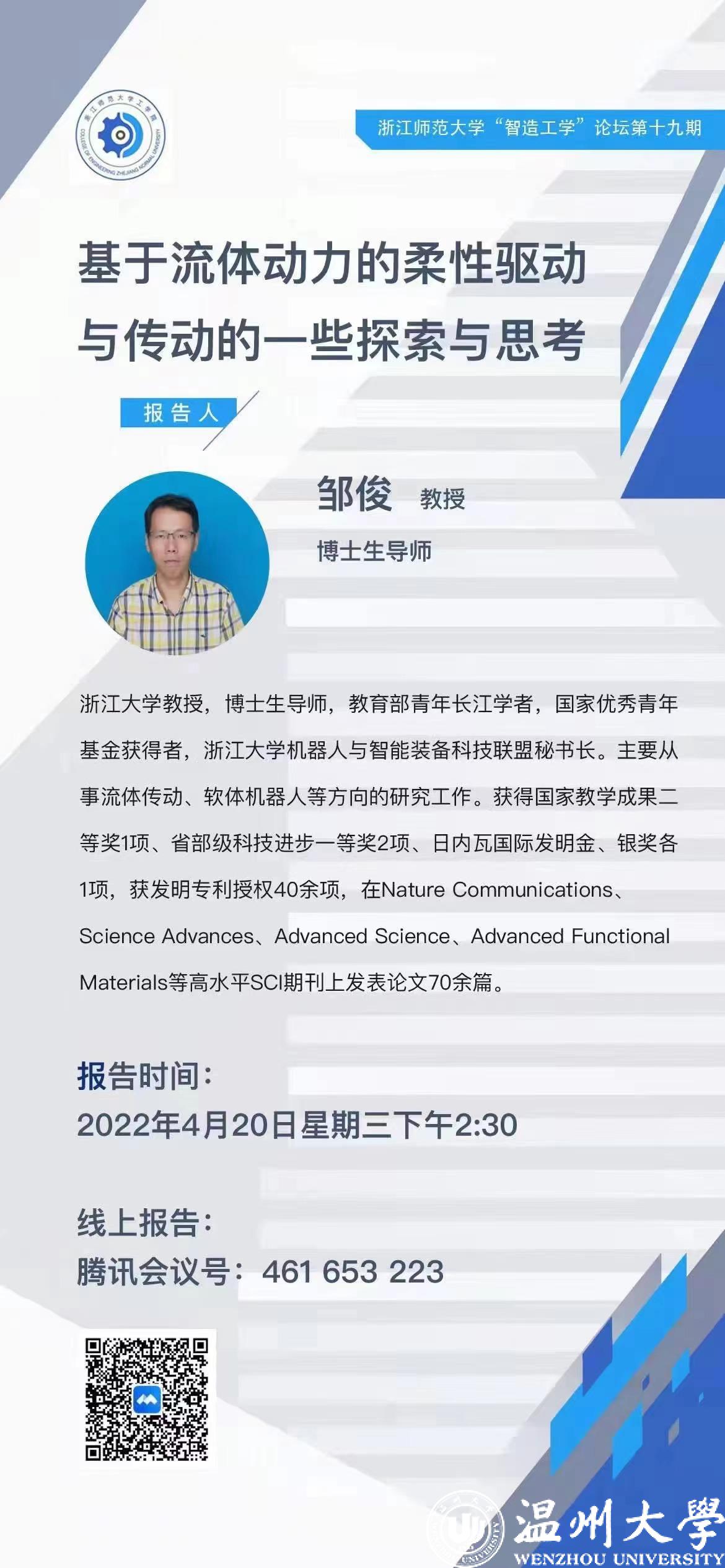 浙江大学教授,博士生导师,教育部青年长江学者,国家优秀青年基金获得者,浙江大学机器人与智能装备科技联盟秘书长。主要从事流体传动、软体机器人等方向的研究工作。获得国家教学成果二等奖1项、省部级科技进步一等奖2项、日内瓦国际发明金、银奖各1项,获发明专利授权40余项,在Nature Communications、Science Advances、Advanced ScienceAdvanced FunctionalMaterials等高水平SCI期刊上发表论文70余篇。