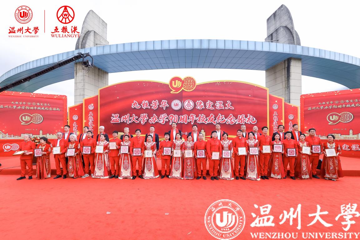学校历任领导、各部门、各学院师生代表在主会场参加典礼,校友纪念婚礼还通过浙广直播等平台向社会进行了同步直播,海内外温大校友共同见证了这一浪漫时刻。