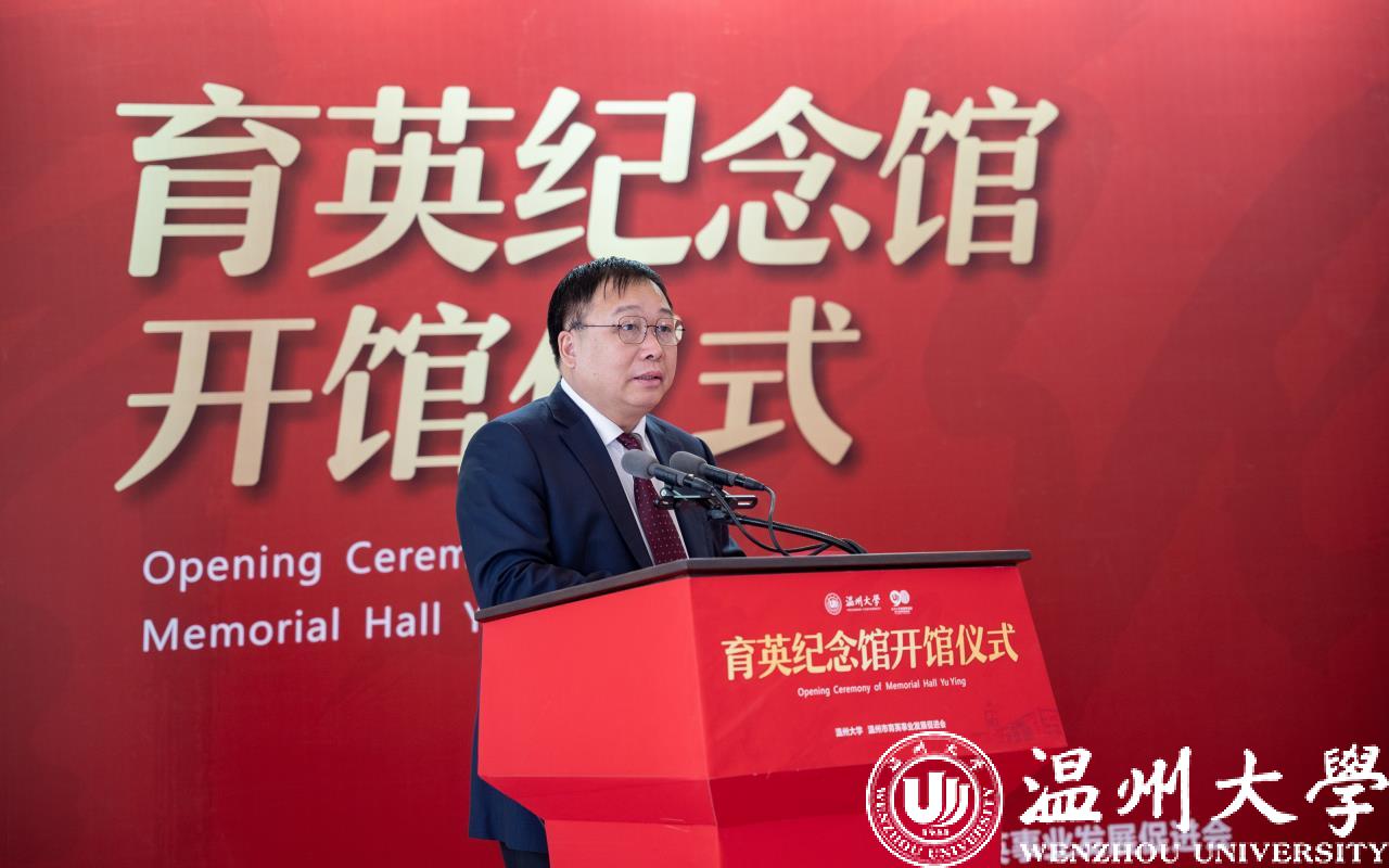 赵敏致辞。他介绍了何朝育先生与夫人何黄美英女士爱国爱乡、造福桑梓的事迹,对何氏家族为追新番 作出的贡献表示感谢。他表示,育英纪念馆将成为传承弘扬“育英精神”的有效载体,将极大推动社会公益慈善事业蓬勃发展。学校也将以此为契机,将育英纪念馆打造成为温大学子弘扬“育英精神”的新地标,教育引领温大师生积善成德、向善而行。