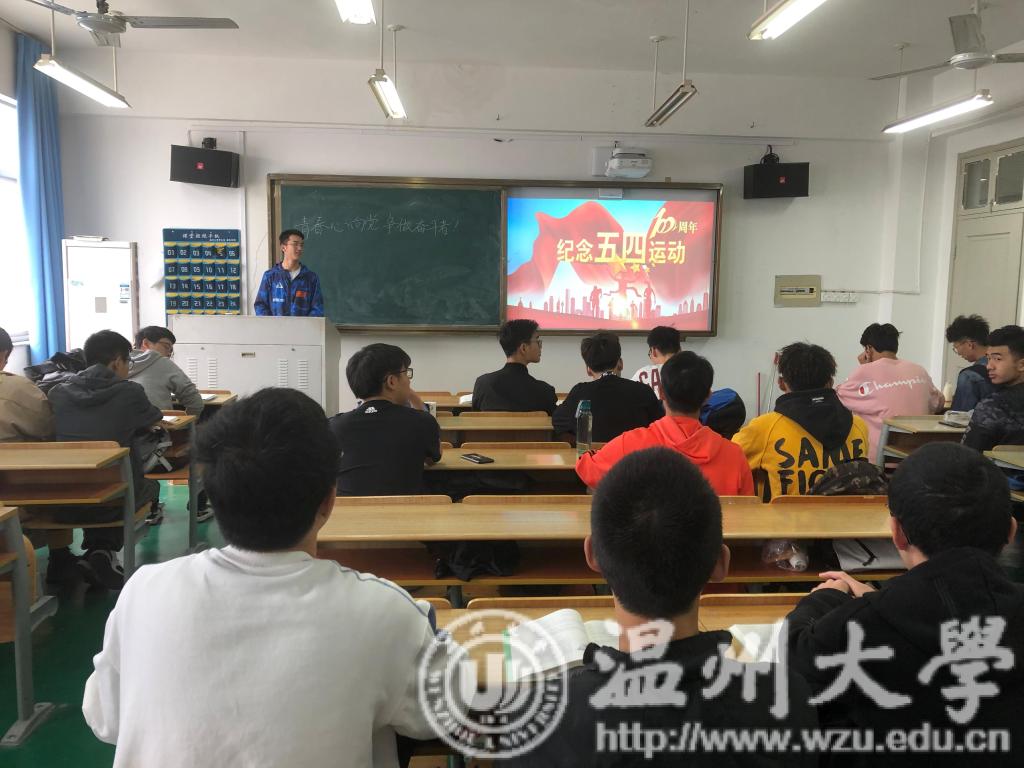 16工业工程全体同学在步青学区学生党员第十党支部的党员同志的带领下,学习了《习近平同志在纪念五四运动100周年大会的重要讲话》,并且详细解读了习近平同志对五四运动历史意义的高度评价、以“六点要求”深情寄语当代青年、如何做好培养青年工作和党与团关系。随后,邀请党支部同志和团支部同学就学习做个心得体会分享。16机械工程2班(卓工)同学以通过视频的方式重温了五四运动的历程,学习了五四精神,同学们也纷纷发表了自己的感悟。17机械工程2班(卓工)的同学特别邀请了马克思主义学院孙邦金老师向支部团员介绍了五四运动的背景及历史意义,全体支部团员还齐唱了团歌。17机械工程1班(卓工)、17工业工程、17车辆工程和18机械工程(专升本)的同学以五四为主题的演讲利用时间轴为同学们梳理了五四运动的经过及其意义,并且学习了《习近平同志在纪念五四运动100周年大会的重要讲话》,同学们纷纷发表自己的感想。18机械类1班和2班的同学开展了观看有关五四专题系列电影、合唱中国共青团团歌、同学们分享感想等活动,回顾五四运动历史,了解五四运动的背景,深刻学习五四运动精神。18机械工程1班、2班、3班同学则开展了五四运动知识竞猜活动,学习了《习近平同志在纪念五四运动100周年大会的重要讲话》,并且讨论了新青年在当代应如何发扬五四精神,同学们纷纷发表了自己观点与想法。