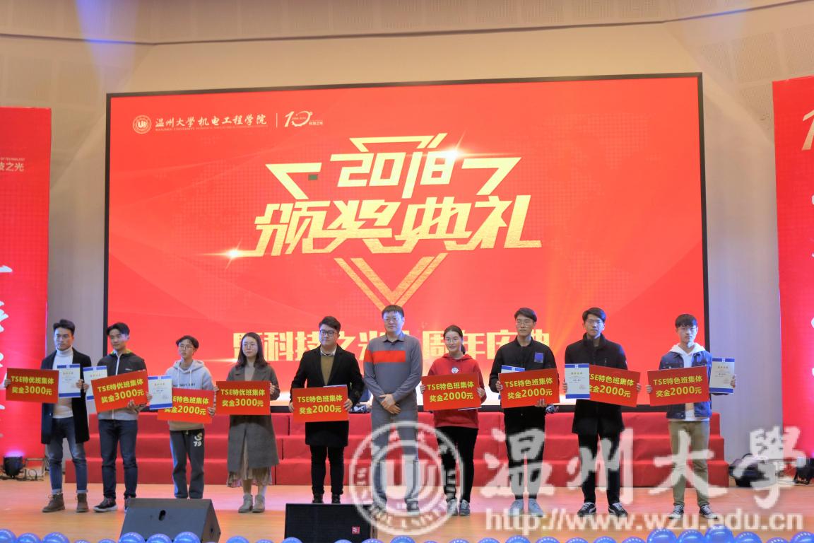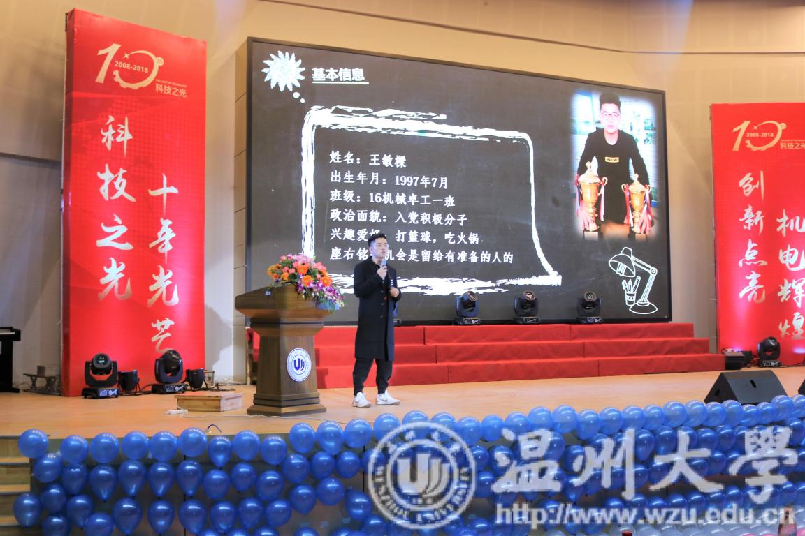 2018年12月19日18:30,为了表彰机电学子在这一年中获得的丰硕果实,同时为了庆祝科技之光活动月举办十周年,追新番 机电学院在南校九号楼报告厅举办了2018年度颁奖典礼暨科技之光十周年庆典。出席本次典礼的有追新番 学生处副处长高红星、宁波兴茂电子科技有限公司罗中伦博士、追新番 党总支书记周荣、追新番 党总支副书记李密、追新番 机械工程系主任周晨、追新番 车辆工程系主任龙江启、追新番 工业工程系主任黄沈权、追新番 教学科科长叶熹僖、追新番 团委书记孙双与来自各专业、各教研室、各科室的教师代表。