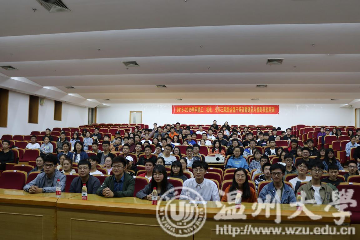 2018年11月9日,由追新番 、建筑工程学院和生命与环境科学学院三院联合举办的团干培训------通讯、摄影培训在岩松堂步青厅举行。出席本次培训的嘉宾有追新番 教师教育学院胡铸鑫老师、追新番 校记者团主编徐嘉璟、三个学院团委学生会主席及全体培训学员。